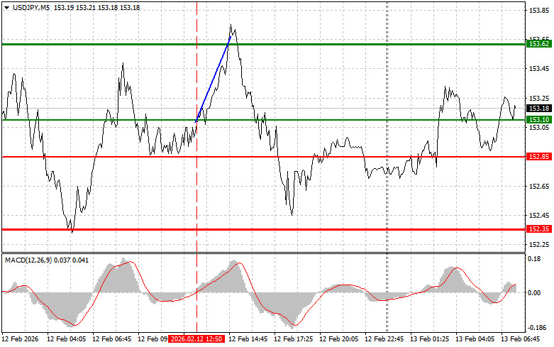 পরিকল্পনা #2: আজ MACD সূচকটি ওভারসোল্ড জোনে থাকাকালীন সময়ে মূল্য পরপর দুইবার 153.05-এর লেভেল টেস্টের ক্ষেত্রে আমি USD/JPY পেয়ার কেনার পরিকল্পনা করছি। এটি এই পেয়ারের মূল্যের নিম্নমুখী হওয়ার সম্ভাবনাকে সীমিত করবে এবং মূল্যকে বিপরীতমুখী করে ঊর্ধ্বমুখী দিকে নিয়ে যাবে। আমরা 153.45 এবং 153.87-এর বিপরীতমুখী লেভেলের দিকে এই পেয়ারের দর বৃদ্ধির প্রত্যাশা করতে পারি।