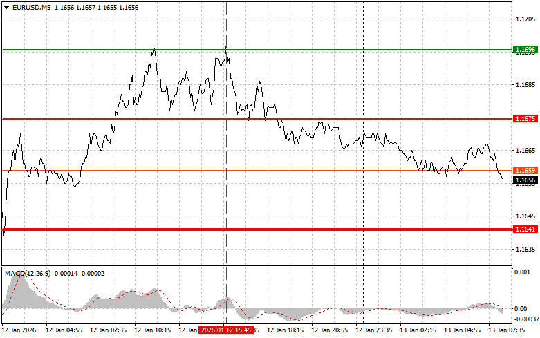 Тестът на цената при 1.1696 съвпадна с движението на индикатора MACD далеч над нулевата линия, което ограничи възходящия потенциал на двойката. Поради тази причина не купих еврото. Спадът на долара спря вчера, след като няколко републикански сенатори критикуваха Доналд Тръмп, който иницира наказателно преследване срещу Пауъл. Този неочакван развой на събитията позволи на долара леко да се засили след разпродажби по-рано през седмицата. Инвеститорите изглежда се бяха изморили от постоянните атаки върху независимостта на Федералния резерв, като разглеждаха действията на Тръмп повече като политически маньовър, отколкото като реална заплаха за стабилността на икономиката на САЩ. Въпреки това, все още е твърде рано да се каже, че разправията е приключила. Тази сутрин не се очакват данни от еврозоната. Не се предвижда и изказвания от европейски политически фигури, което може да укрепи допълнително позициите на купувачите на долара. Все пак е важно да се отбележи, че дългосрочната перспектива за долара остава несигурна. Нарастващата дискусия за вероятно забавяне на икономиката на САЩ и предстоящ цикъл на понижаване на лихвените проценти негативно влияят на американската валута. Освен това, политическите рискове добавят нестабилност на пазара. Поради това, на търговците се препоръчва да бъдат предпазливи. По отношение на дневната стратегия, аз основно ще разчитам на сценарии № 1 и № 2.