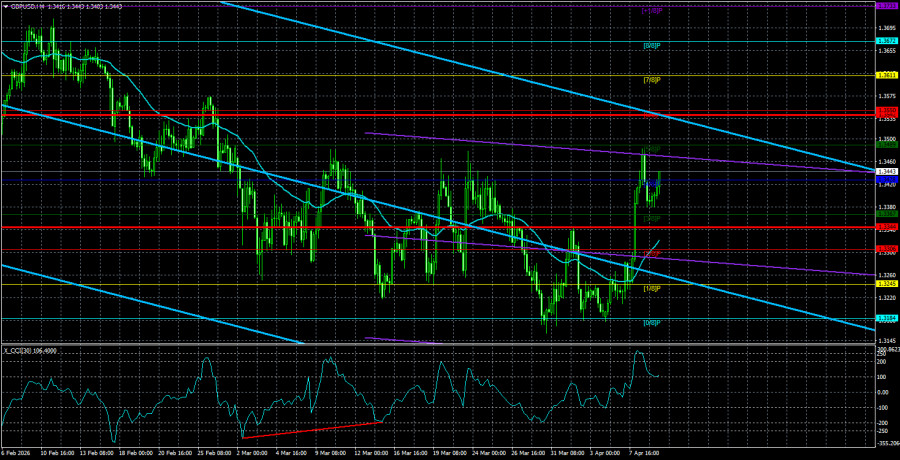 週四,GBP/USD 貨幣對整體走勢相對平穩,但仍然維持上行偏向。坦白說,在當前情況下,美元出現任何回落都顯得有些反常,因為中東實際上並沒有真正停火,停火只存在於紙面上。因此,市場並沒有什麼特別值得樂觀的理由。