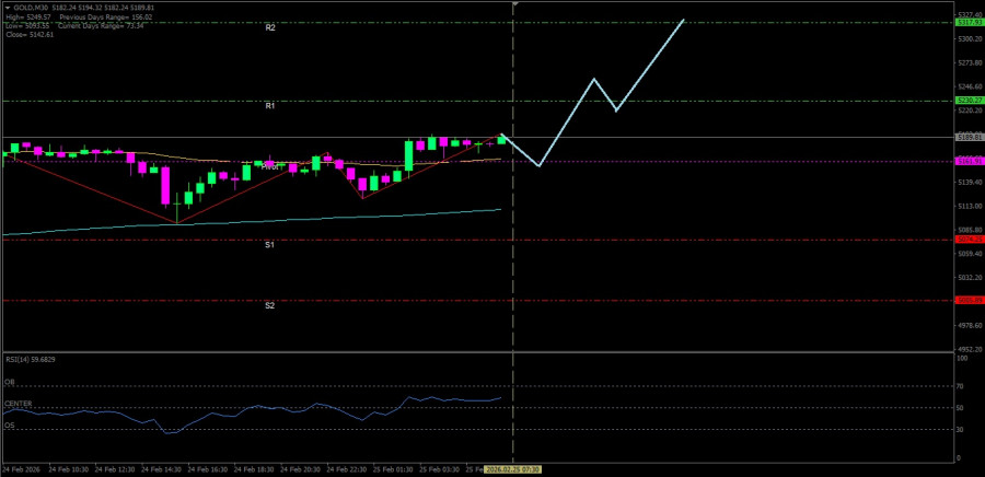 Zóna pozitivní reakce: Pokud zlato prorazí nad 5 161,91 USD, může pohyb pokračovat směrem k 5 230,27 USD.