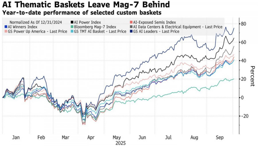 Umělá inteligence kraluje trhu! Ať už Donald Trump vyhrožuje masovým propouštěním, Scott Bessent varuje před zpomalením americké ekonomiky, nebo ADP zveřejní slabá čísla o soukromém sektoru – index S&P 500 přesto zaznamenal své už 30. historické maximum v tomto roce. Tahouny růstu jsou technologičtí giganti. Dohody mezi OpenAI a jihokorejskými společnostmi Samsung Electronics a SK Hynix způsobily rychlý obrat na indexu poté, co v úvodu obchodní seance krátce oslabil.