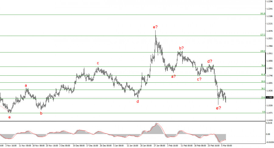 Der Markt hält jedoch derzeit an einer klar „bärischen“ Stimmung fest, und dies ist vermutlich einer jener Fälle, in denen weder der Nachrichtenhintergrund noch die Wellenstruktur das Geschehen beeinflussen können. Meine Leser können das alles selbst sehen. Selbst wenn die aktuelle Wellenstruktur fehlerhaft ist oder die Abwärtssequenz komplexer und ausgedehnter wird, kann niemand bestreiten, dass der Nachrichtenhintergrund heute vollständig zugunsten der europäischen Währung ausgefallen ist. Der Markt entschied sich jedoch, in einer Art Halteposition zu bleiben, in der völlig unklar ist, ob sich die Abwärtsstruktur weiter verkompliziert oder ob schließlich doch die Ausbildung einer Aufwärtssequenz beginnt.