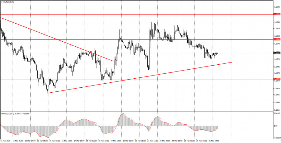 Das Währungspaar EUR/USD zeigte sich am Donnerstag weder Fisch noch Fleisch. Eine schwache Abwärtsbewegung innerhalb eines schwachen Aufwärtstrends setzte sich den ganzen Tag über fort. In der Eurozone und in den USA fehlte es an makroökonomischem und fundamentalen Hintergrund, doch der Markt schenkte diesen ohnehin keine Beachtung. Das einzige Ereignis des Tages war eine weitere Rede von Donald Trump, der erneut erklärte, dass er Angriffe auf die iranische Energieinfrastruktur um weitere 10 Tage bis zum 6. April verschieben werde. Nach Angaben des amerikanischen Präsidenten sei diese Bitte von den iranischen Behörden gekommen, vermutlich im Zusammenhang mit laufenden oder bevorstehenden Verhandlungen zwischen Washington und Teheran. Der Dollar schwächte sich nach diesen Nachrichten deutlich ab, doch der Markt reagierte diesmal nur sehr kurz auf diese Meldung. Händler sind der ständigen „Fake News“ Trumps, die nicht durch tatsächliche Fakten gestützt werden, überdrüssig geworden. Somit wurde die Eskalation zwar erneut vertagt, doch von einer Deeskalation des Konflikts ist weiterhin nichts zu sehen.