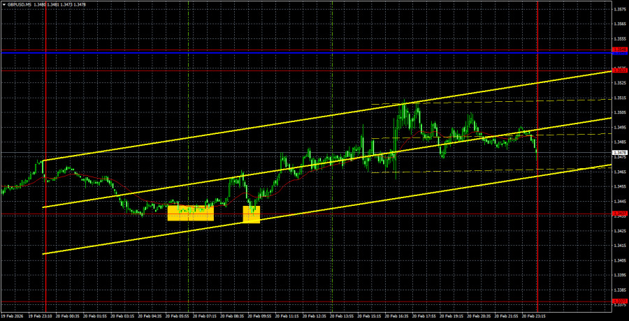The GBP/USD currency pair had every reason to show strong growth on Friday. However, as we mentioned, the market did not know how to interpret all the information it received and continues to ignore inconvenient reports. For example, on Tuesday and Wednesday last week, the UK published reports on unemployment and inflation. Both reports are significant and indicate a decline in the British currency, which we indeed witnessed. On Friday, reports on UK business activity and retail sales suggested a rise in the British currency. The market responded with cautious buying, which was no match for the preceding sell-offs. In the afternoon, the US fourth-quarter GDP report, a tear-jerker, was released, but even then, the dollar was in no rush to fall. In the evening, the Supreme Court overturned Trump's tariffs, and Trump immediately reinstated them in another form, while on Saturday, the US leader raised the tariff rate to 15%, presumably considering 10% insufficient.
