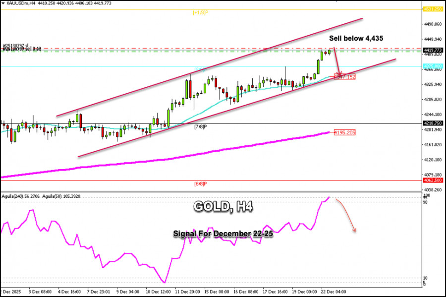 O ouro está sendo negociado em torno de US$ 4.419, apresentando um forte movimento de alta desde a abertura da sessão desta semana. O metal se aproxima do nível de resistência semanal em US$ 4.435. Após esse impulso altista significativo, cresce a probabilidade de uma correção técnica acentuada nos próximos dias.