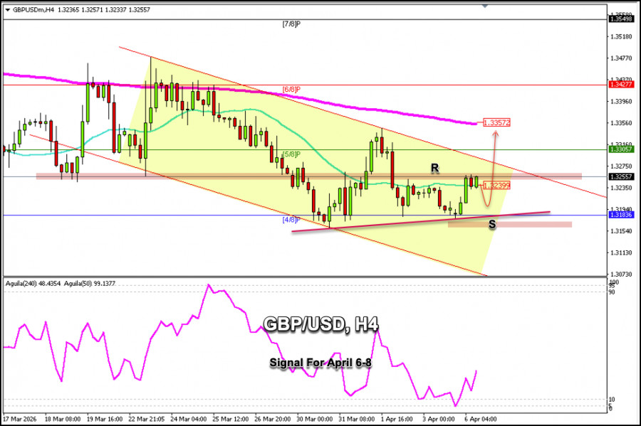 A libra esterlina pode continuar subindo nos próximos dias, mas precisaria se consolidar acima de 1,3260 e romper o nível 5/8 de Murray, acima de 1,3305; nesse caso, poderia alcançar a máxima de 22 de março, cerca de 1,3470.