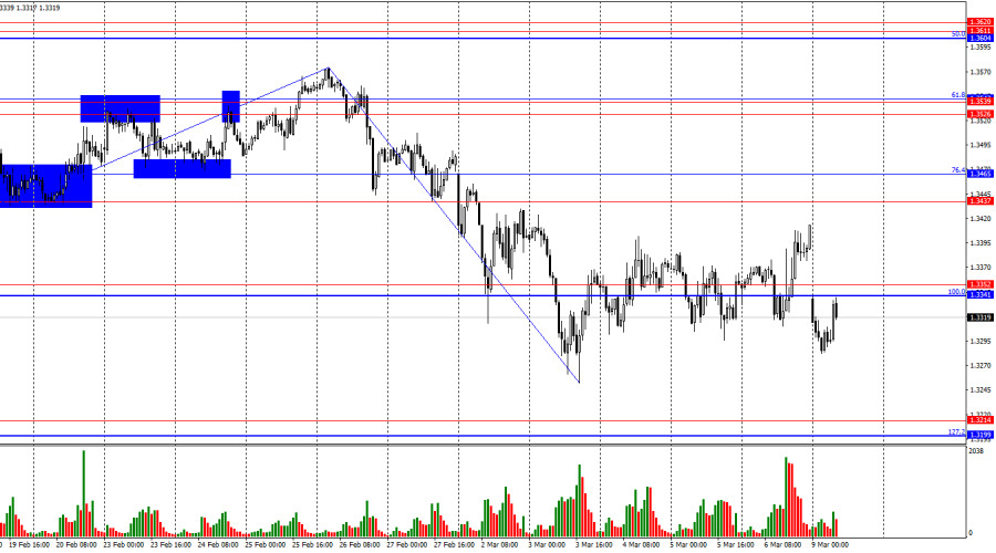 Assim, o dólar deveria ter sofrido forte pressão por parte dos traders, mas mesmo a ausência de notícias geopolíticas relacionadas à guerra no Irã não deu sustentação aos touros. Os traders consideraram os dados do mercado de trabalho pouco relevantes nas circunstâncias atuais, acreditando que a guerra no Irã terá um impacto muito maior na política monetária do Fed, na economia dos EUA e na economia global do que mais uma queda no mercado de trabalho americano. Na minha opinião, o mercado já precificou em grande parte o conflito iraniano, o que abre perspectivas para a libra — ao menos para um movimento corretivo. Contudo, a sexta-feira não se transformou em um dia de correção mais consistente.