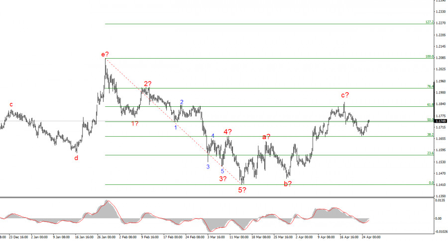 O padrão de ondas no gráfico de 4 horas do EUR/USD sofreu alguma alteração. Ainda não se considera o cancelamento do segmento de tendência de alta (gráfico inferior), iniciado em janeiro do ano passado, mas a estrutura atual tornou-se mais ambígua.