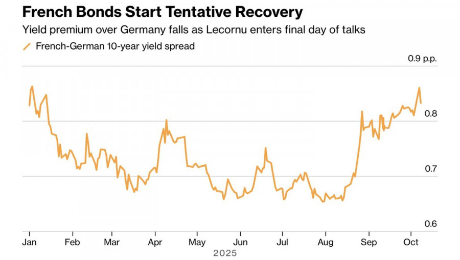 Ослабление денежно-кредитной политики ЕЦБ в 2026 или нежелание ФРС снизить ставку по федеральным фондам на одном из заседаний FOMC в 2025, в октябре или декабре, лишит «быков» по EUR/USD основного козыря. Такое возможно, но маловероятно. Поэтому текущий откат из-за эскалации политического кризиса во Франции больше похож на коррекцию, чем на слом тренда.