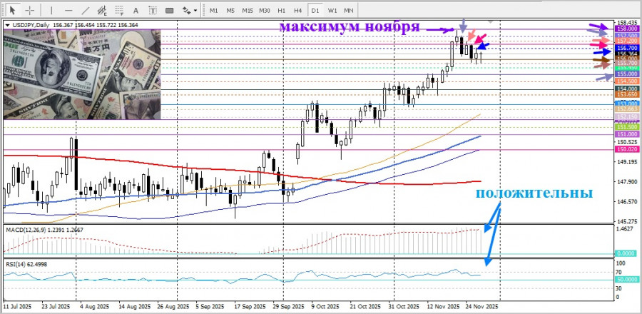 С другой стороны, ослабление пары ниже минимума азиатской сессии в районе 155,70, а так же минимума вчерашней азиатской сессии в районе 155,65, откроет путь к более значительным потерям, подталкивая пару USD/JPY к психологическому уровню 155,00. Убедительный прорыв ниже него можно рассматривать как новый триггер для медведей, который подготовит почву для продолжения недельного нисходящего движения, которое началось 20 ноября.