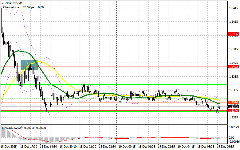Фунт вырос вчера после того, как Банк Англии снизил процентные ставки, но присоединился к волне других центральных банков, предупреждая, что скорость и масштабы будущих снижений теперь находятся под вопросом. Дополнительное давление на доллар оказали и новости о резком снижении годовой инфляции в США. Сегодня в первой половине дня ожидаются цифры по изменению объёма розничной торговли в Великобритании и данные по чистому объему заемных средств государственного сектора Великобритании. В случае хороших показателей фунт вернется к росту, но сделать это будет довольно сложно. При варианте медвежьей реакции на данные первого проявления покупателей ожидаю в районе 1.3370. Лишь формирование там ложного пробоя будет хорошим вариантом для открытия длинных позиций с целью роста к сопротивлению 1.3402. Прорыв и обратный тест сверху-вниз этого диапазона увеличат шансы на укрепление GBP/USD, что приведет к сносу стоп-приказов продавцов и подходящей точке входа в длинные позиции с возможностью выхода к 1.3426. Самой дальней целью будет область 1.3452, где собираюсь фиксировать прибыль. При сценарии снижения GBP/USD и отсутствия активности со стороны покупателей на 1.3370, давление на пару существенно увеличится в конце недели, что приведет к движению в район следующей поддержки 1.3341. Лишь формирование там ложного пробоя будет подходящим условием на открытие длинных позиций. Покупать GBP/USD сразу на отскок собираюсь от минимума 1.3312 с целью коррекции в 30-35 пунктов внутри дня.