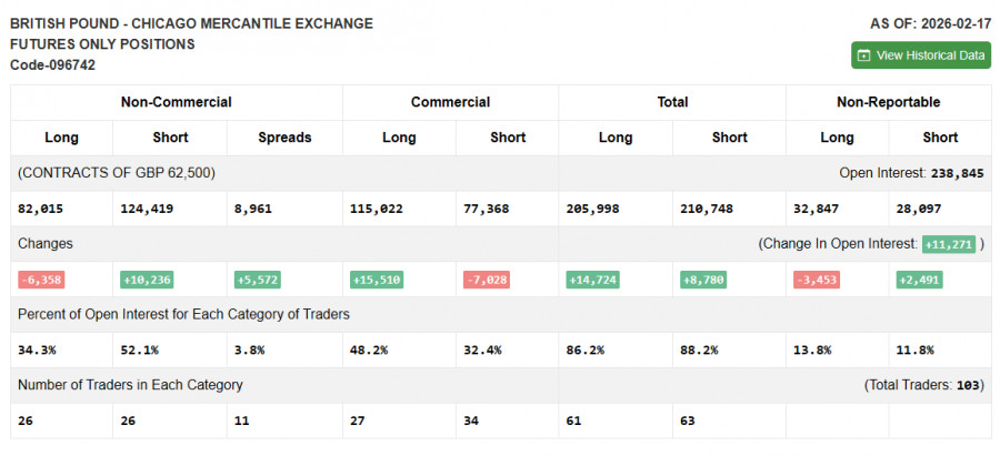 Прежде чем разбирать техническую картину фунта давайте посмотрим, что произошло на фьючерсном рынке. В COT-отчете (Commitment of Traders) за 17 февраля наблюдался рост коротких позиций и сокращение длинных. Разворот Банка Англии в сторону более мягкой денежно-кредитной политики продолжает сказываться на позициях британского фунта. Последние данные по ВВП и рынку труда лишь добавили уверенности в том, что регулятор будет действовать более мягко. В последнем COT-отчете указано, что длинные некоммерческие позиции сократились на 6 358 до уровня 82 015, тогда как короткие некоммерческие увеличились на 10 236 до уровня 124 419. В итоге спрэд между длинными и короткими позициями вырос на 5 572.