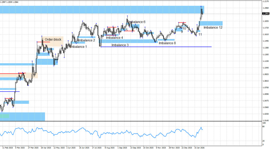 Von den Ungleichgewichten 1, 2, 4, 5, 3, 8 und 9 hatten Händler die Möglichkeit, den Euro zu kaufen. In allen Fällen sahen wir einen gewissen Anstieg, und der Aufwärtstrend hielt an. Letzte Woche wurde ein neues bullisches Signal vom Ungleichgewicht 11 gebildet, was den Händlern erneut ermöglichte, Long-Positionen mit einem Ziel von 1.1976 einzugehen. Dieses Ziel wurde erreicht. Diese Woche wurde ein weiteres bullisches Ungleichgewicht 12 gebildet, was bedeutet, dass Händler in naher Zukunft eine neue Kaufgelegenheit erhalten könnten.