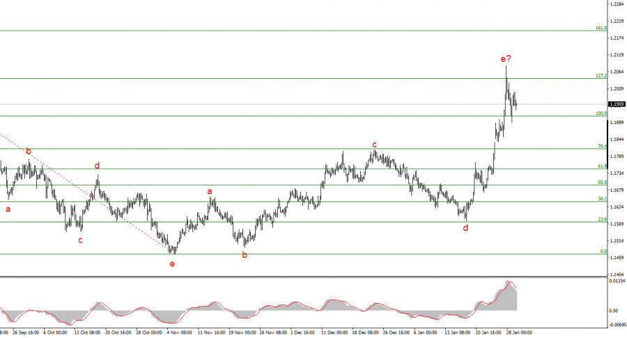 Seltsamerweise könnte die Wellenanalyse jetzt den Dollar unterstützen. Eine vollständige Fünf-Wellen-Struktur wurde beobachtet, was bedeutet, dass sich in den kommenden Wochen eine Korrekturwelle oder eine Reihe von Korrekturwellen bilden könnte. Diese Korrektur wäre eine Erleichterung für den Dollar. Der Markt zögert jedoch, den Dollar zu unterstützen und Korrekturen zu bilden, da bereits am Sonntag die US-Regierung und viele öffentliche Einrichtungen wieder von einem Shutdown betroffen sein könnten. Demokraten und Republikaner können sich erneut nicht auf die Finanzierung einigen, und das bisherige Finanzierungspaket läuft am 31. Januar aus.