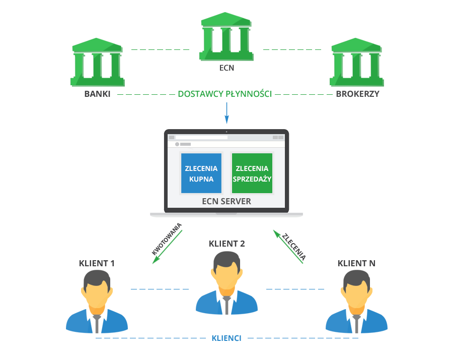 ECN to skomputeryzowany system, który automatycznie dopasowuje zlecenia kupna i sprzedaży, usprawniając w ten sposób proces handlu.