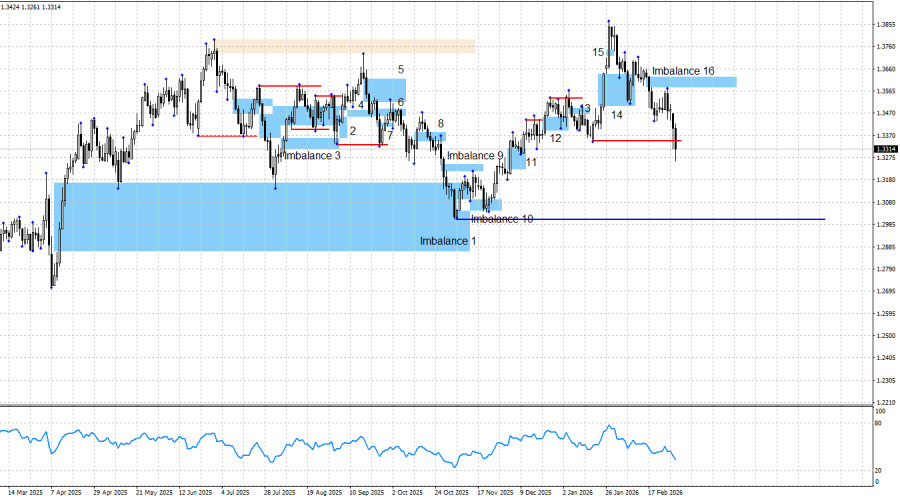 A tendência de alta da libra permanece intacta. Portanto, enquanto se mantiver acima do nível 1,3012, o foco deve permanecer nos sinais altistas. A queda recente da libra pode ser intensa, mas também pode se encerrar a qualquer momento. O único desequilíbrio 16 atualmente ativo ainda não gerou sinal. No momento, não há fundamentos técnicos para novas operações. A possível captura de liquidez a partir do movimento de 19 de janeiro não se confirmou. Novos desequilíbrios baixistas podem se formar ao longo da semana, mas, ao abrir posições de vendas, é essencial avaliar por quanto tempo o dólar continuará recebendo suporte em meio ao cenário geopolítico no Oriente Médio.