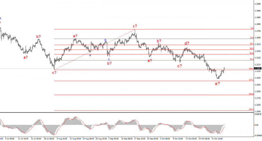 Понижательная структура волн, берущая начало 17 сентября, приняла пятиволновой вид a-b-c-d-e и может быть завершена. Если это действительно так, то сейчас инструмент находится в самом начале построения нового повышательного набора волн.